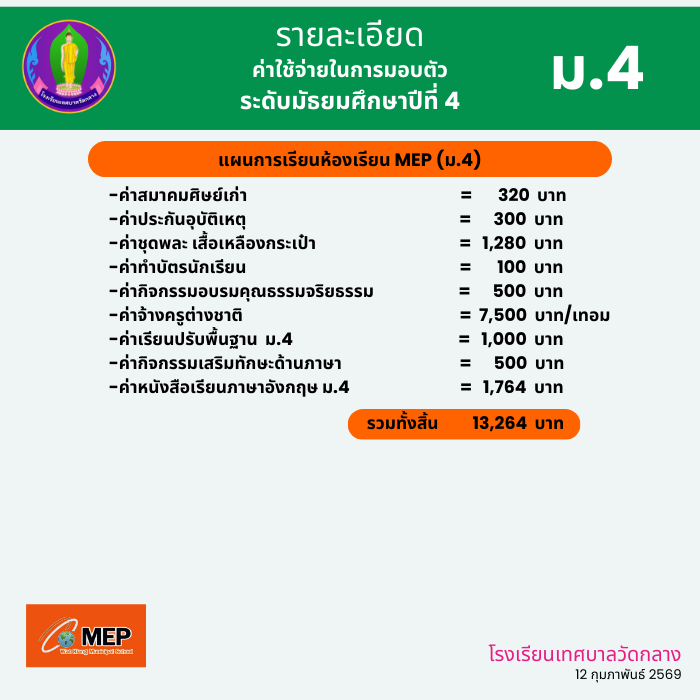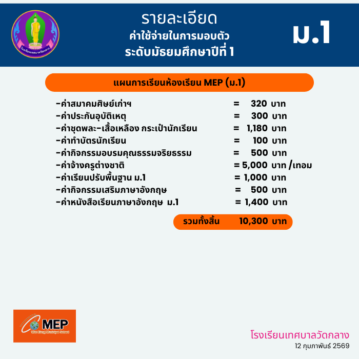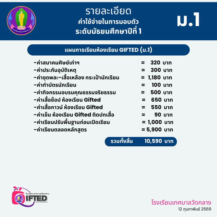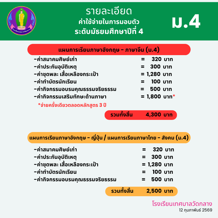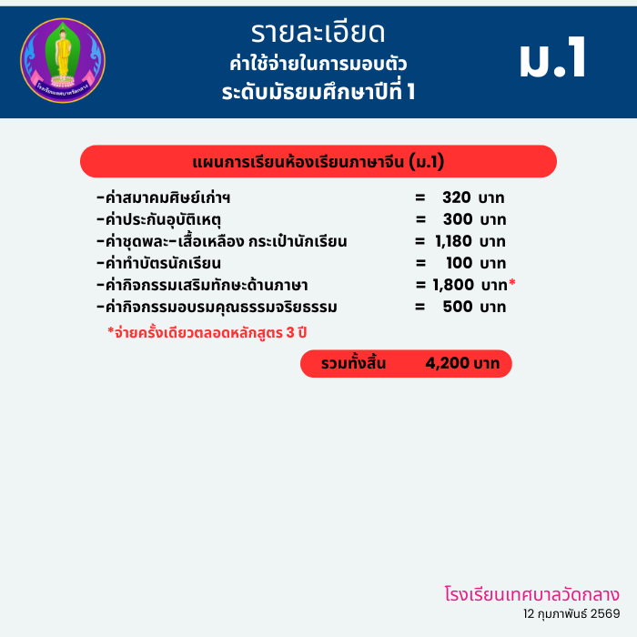 ค่าใช้จ่ายเข้าเรียน ปี 2569