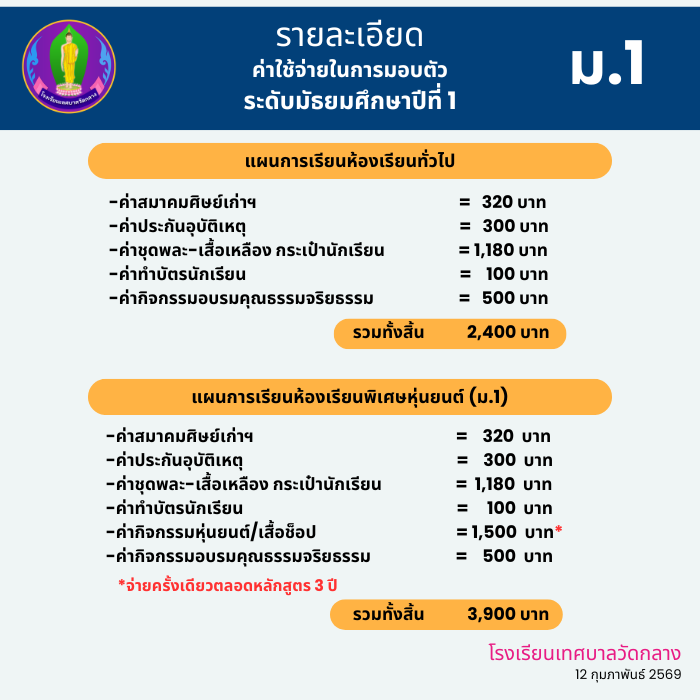 ค่าใช้จ่ายเข้าเรียน ปี 2569